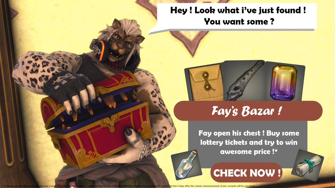 * : A ticket cost 20k. Each customer can buy a maximum of 10 tickets. Winners is announced at the end of EU HrothMarket. Winner have to claim his rewards in the 7 days after the winners announcement. if not, rewards will be cancelled.